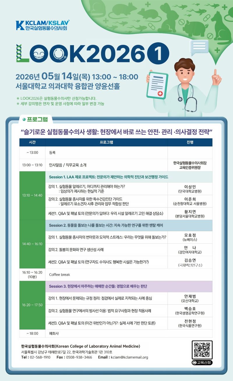| 제77차 한국실험동물수의사회 연수교육.. | 2026-04-20 |