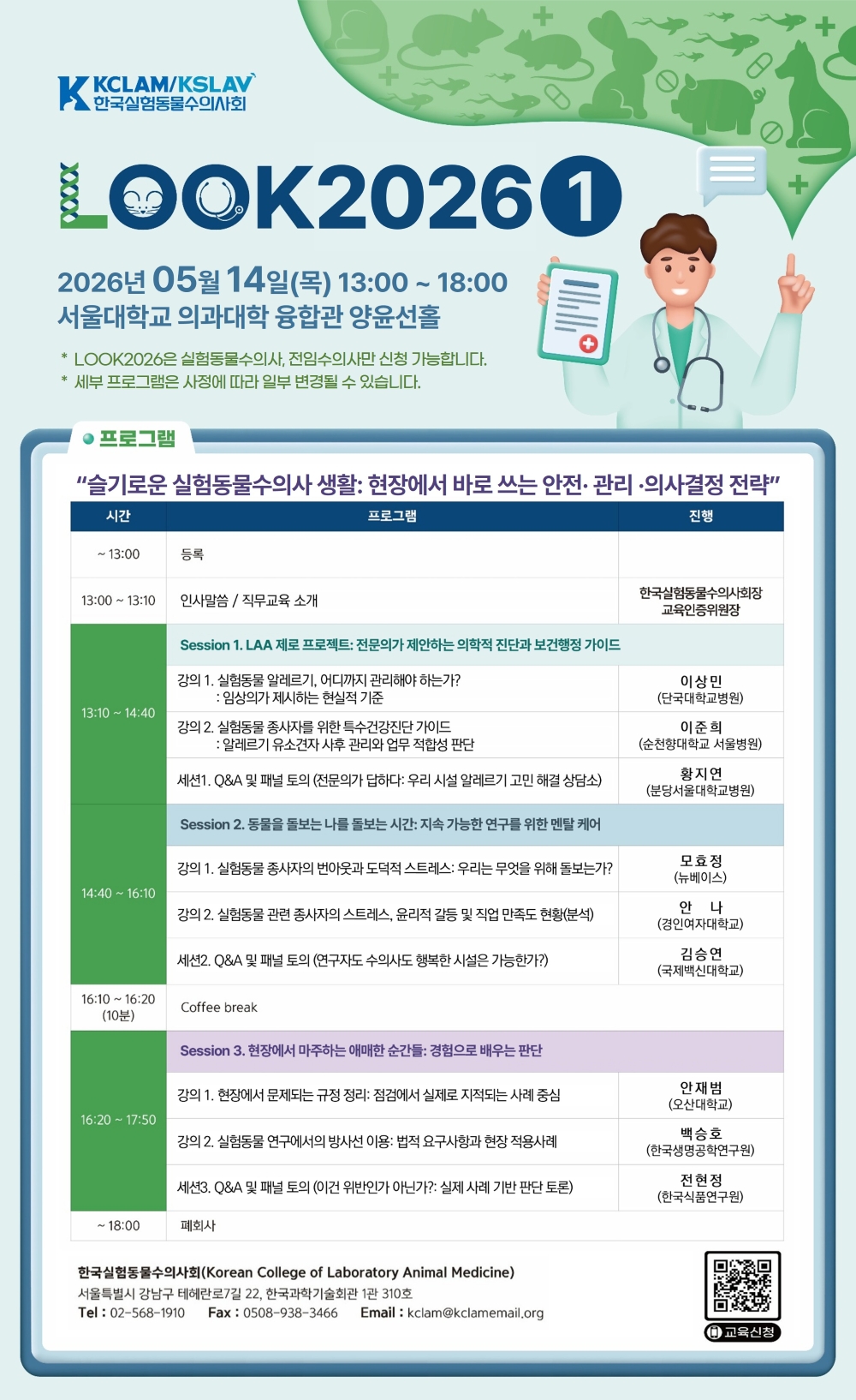 * KCLAM 회원이 아닌 실험동물수의사일 경우 KCLAM 홈페이지( www.kclam.org)에서