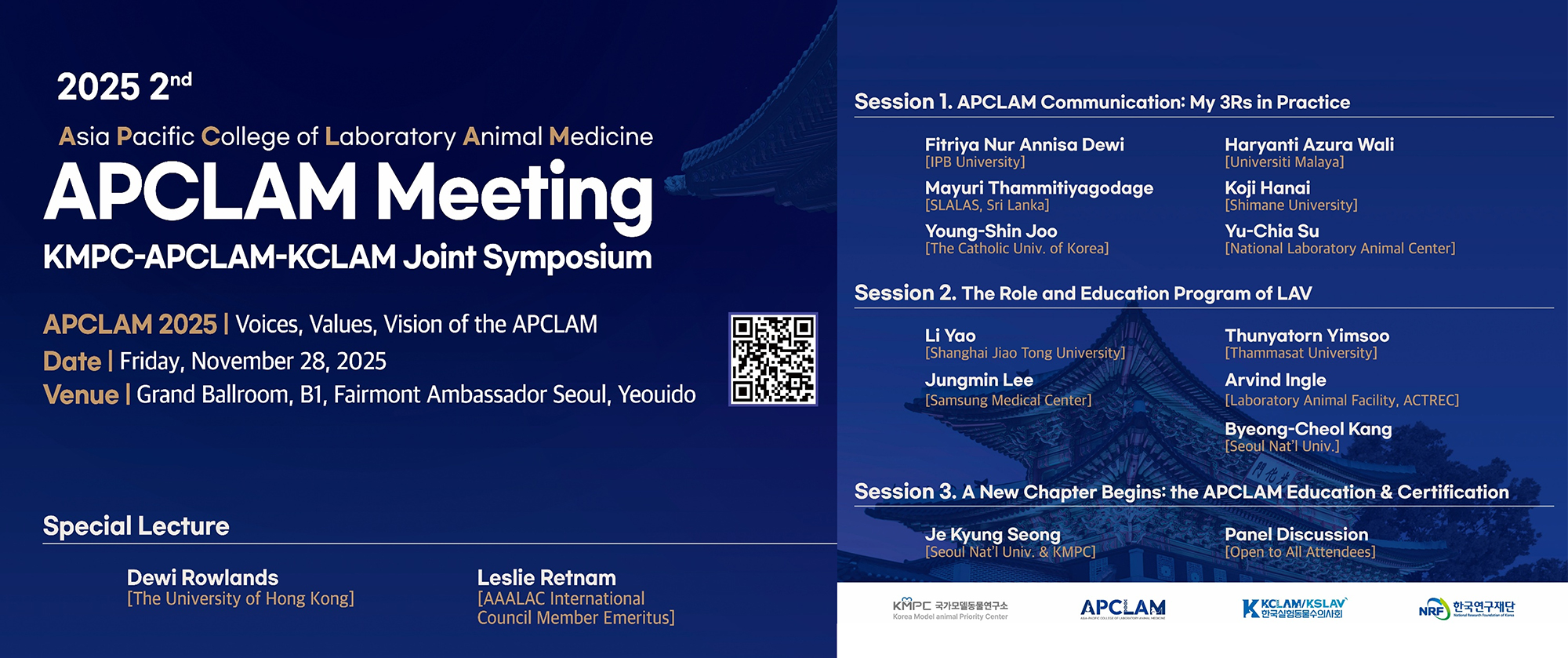 ▣ 공동 주최: (재)국가모델동물연구소(KMPC), 아시아태평양실험동물수의사회(APCLAM)